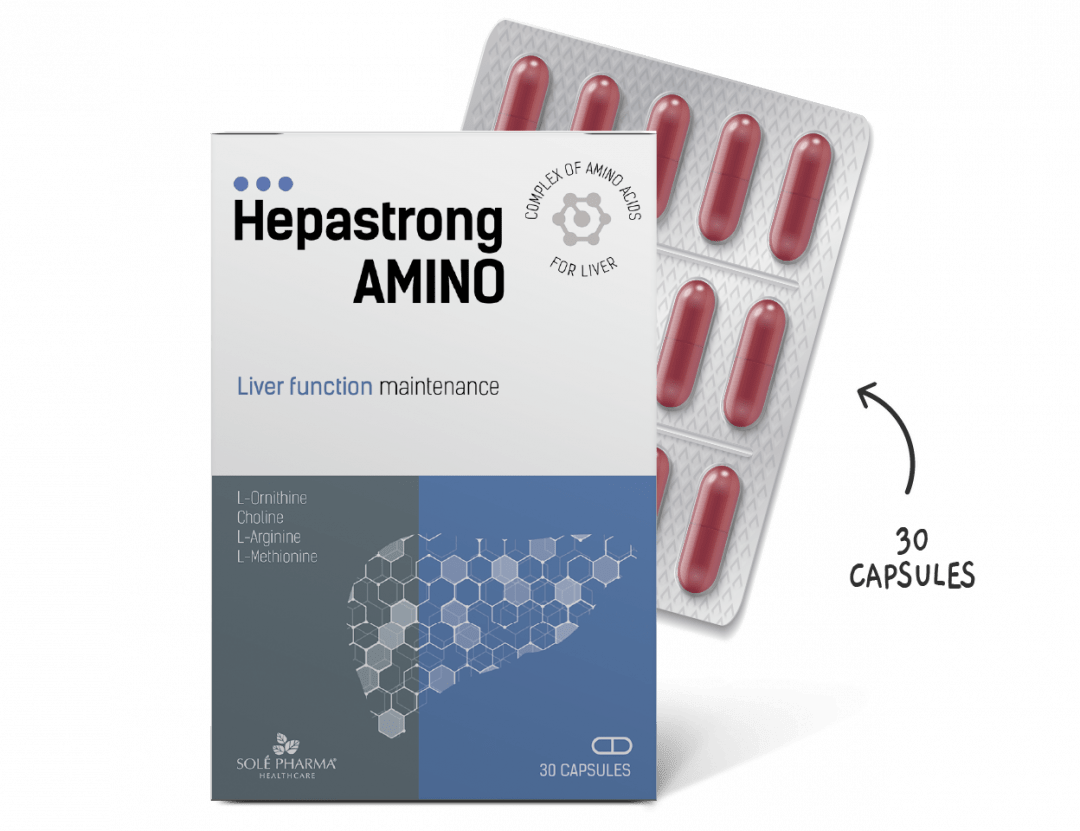 Hepastrong AMINO capsules lower liver enzymes – only 1 capsule per day lowers AST and ALT enzymes and ensures detoxification.
